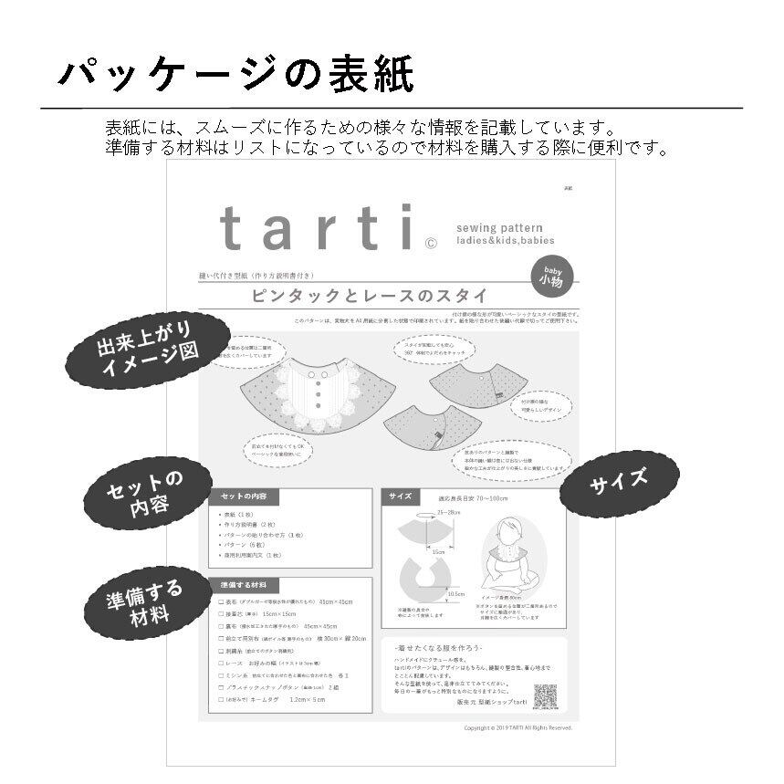 【パターンを利用した商品の販売】販売の際と、購入者への商品引き渡しの際にtartiの型紙だということを下記指定の方法で表示すれば可。