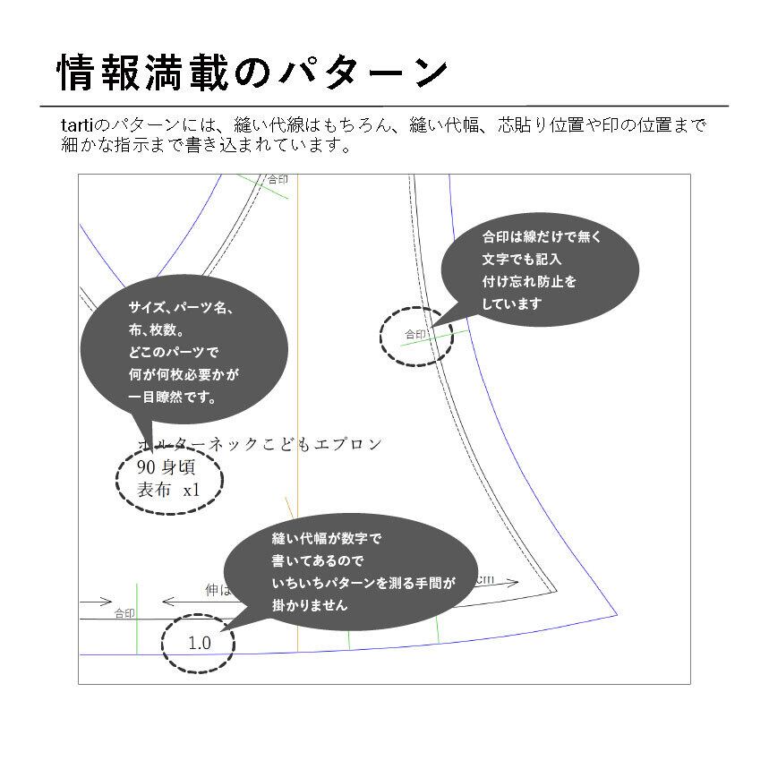 【パターンを利用した商品の販売】販売の際と、購入者への商品引き渡しの際にtartiの型紙だということを下記指定の方法で表示すれば可。