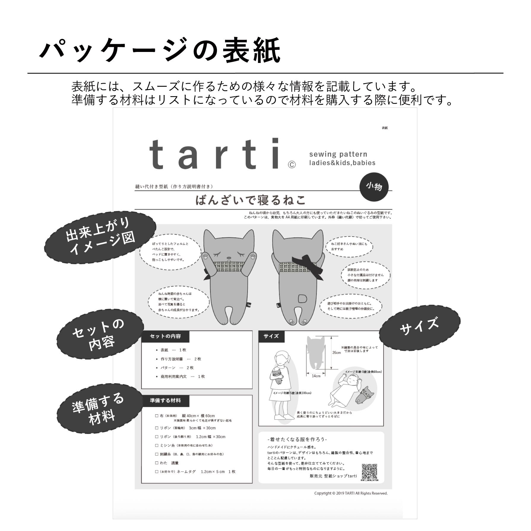 【パターンの再配布】原則不可。例外として、講師等で受講生への配布は表紙を添付してtartiの商品ということを明確にすれば可。