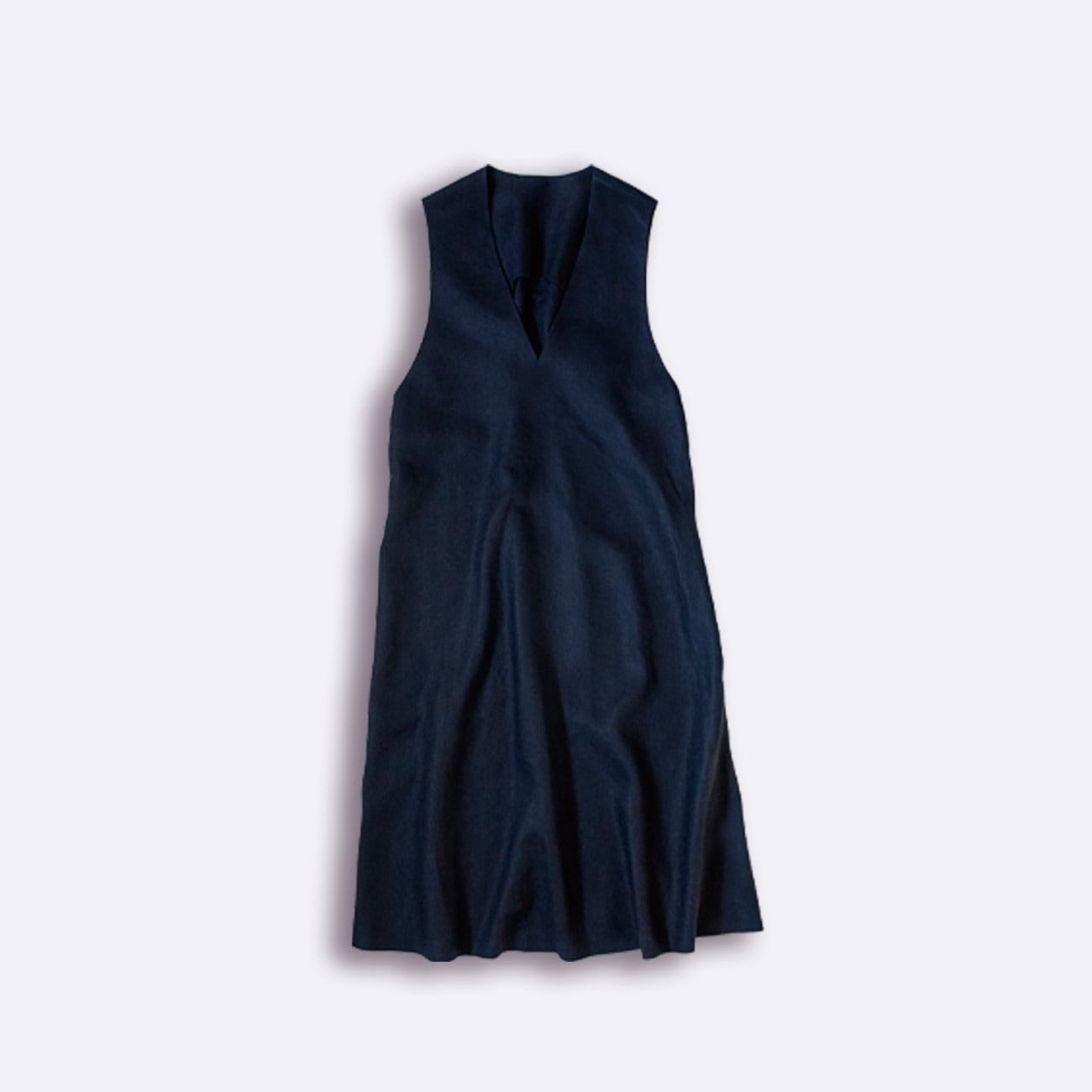襟ぐりの深いV開きは抜け感があり、たっぷりフレアの前身頃と、スカートの後ろはマーメイドでニュアンスをプラス。