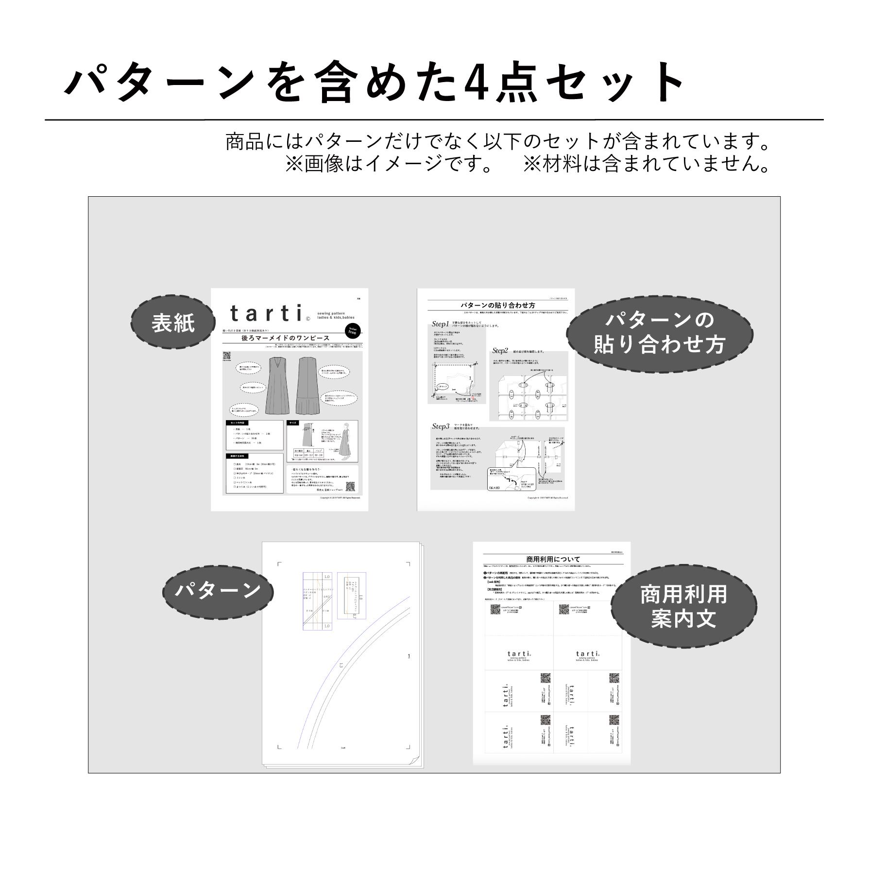 【パターンを利用した商品の販売】販売の際と、購入者への商品引き渡しの際にtartiの型紙だということを下記指定の方法で表示すれば可。
