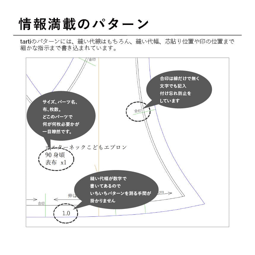 “着たくなる服を作ろう”というコンセプトの型紙ショップTARTI。そのコンセプトのもと、妥協しない仕上がりを目指して考え抜いた仕様の型紙です。