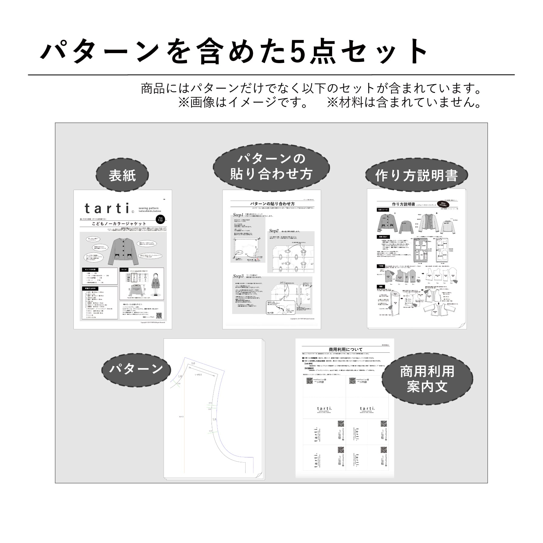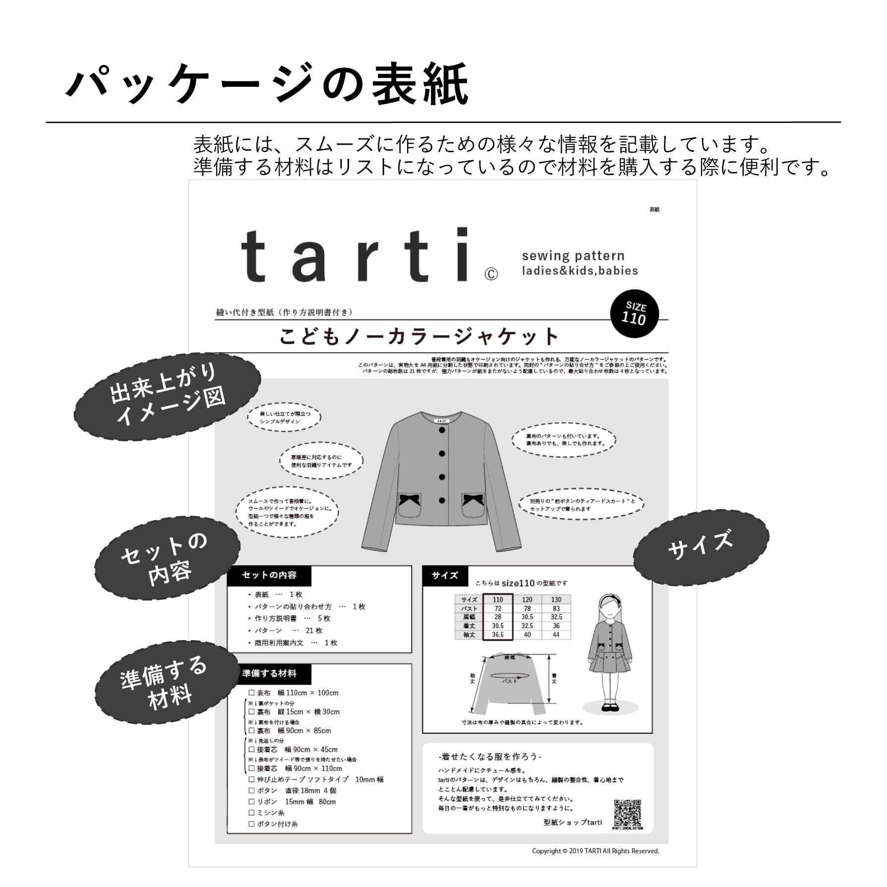 ❷パターンを利用した商品の販売 販売の際と、購入者への商品引き渡しの際にtarti の型紙だということを下記指定の方法で表示すれば可。