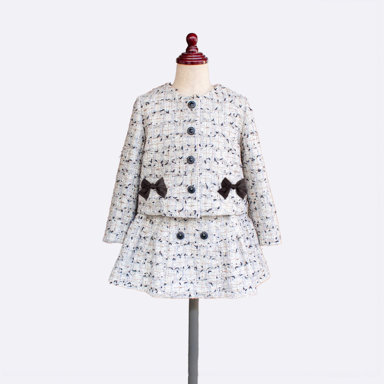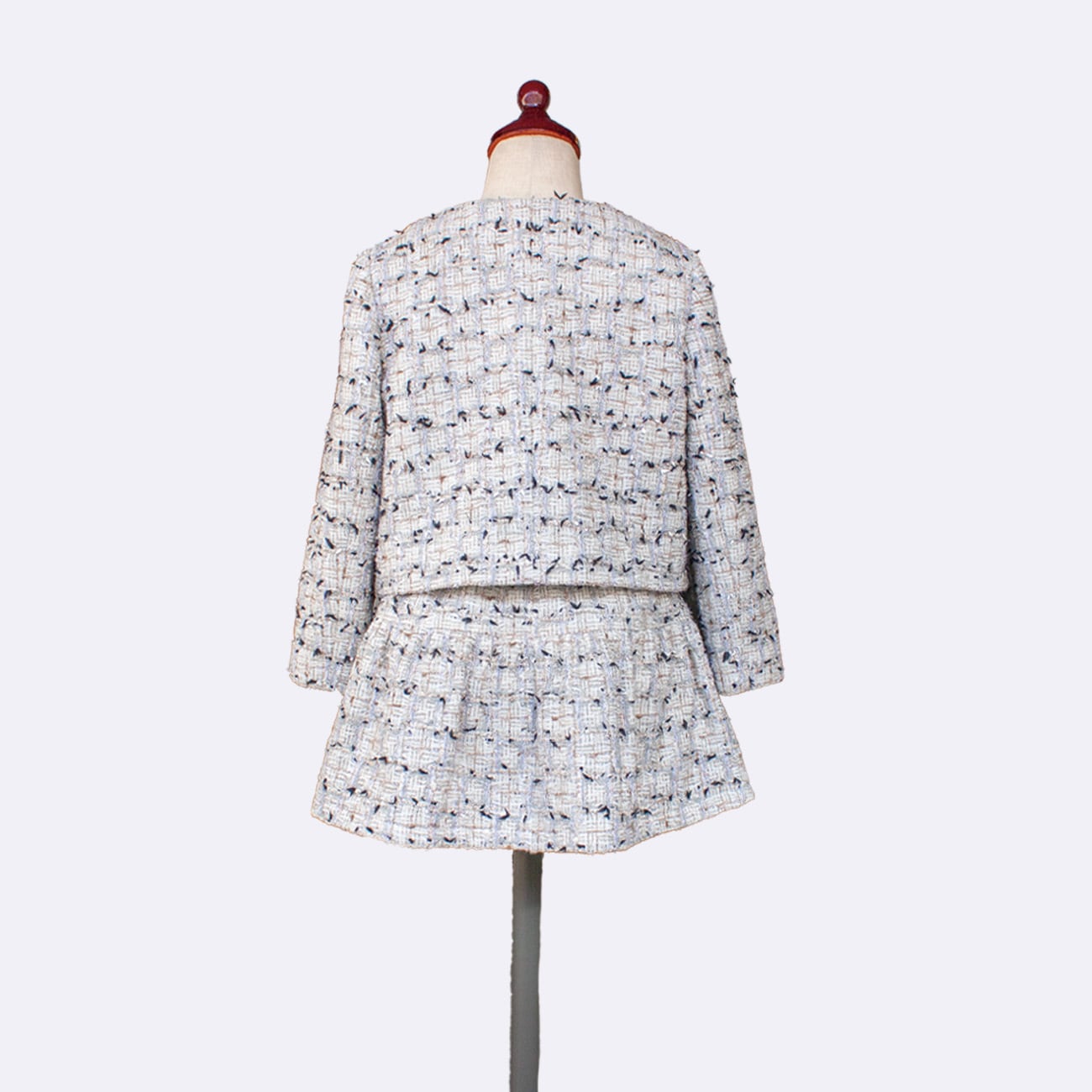”こどもノーカラージャケット”と前ボタンのティアードスカート”の型紙のセット商品です。