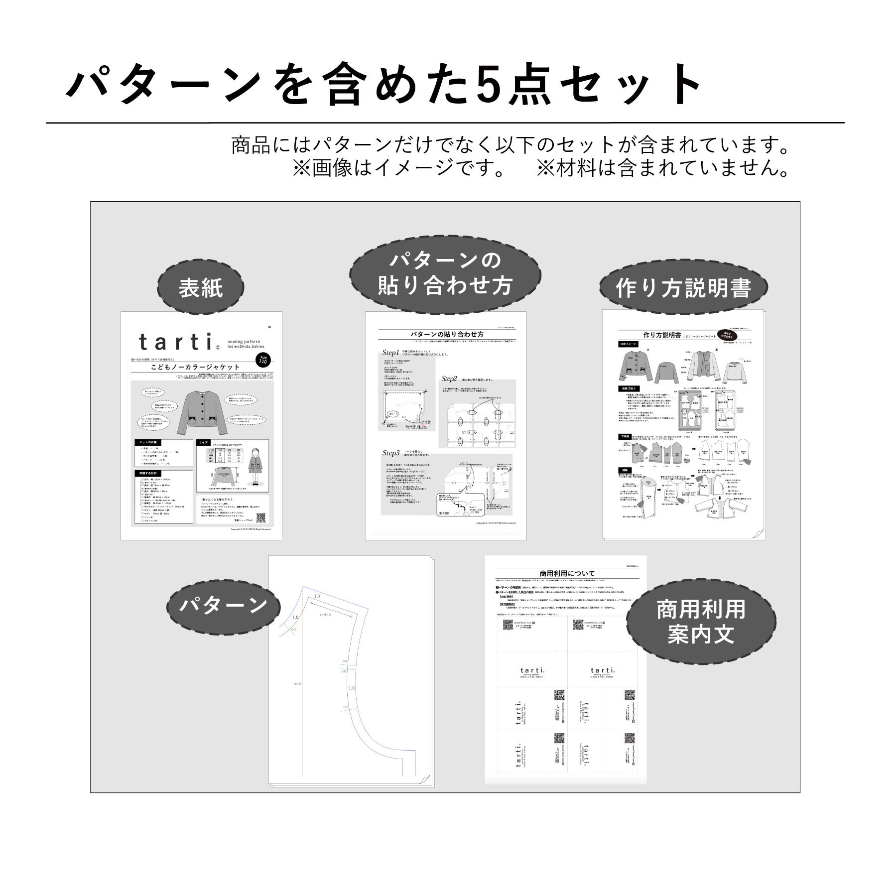 ❷パターンを利用した商品の販売 販売の際と、購入者への商品引き渡しの際にtarti の型紙だということを下記指定の方法で表示すれば可。