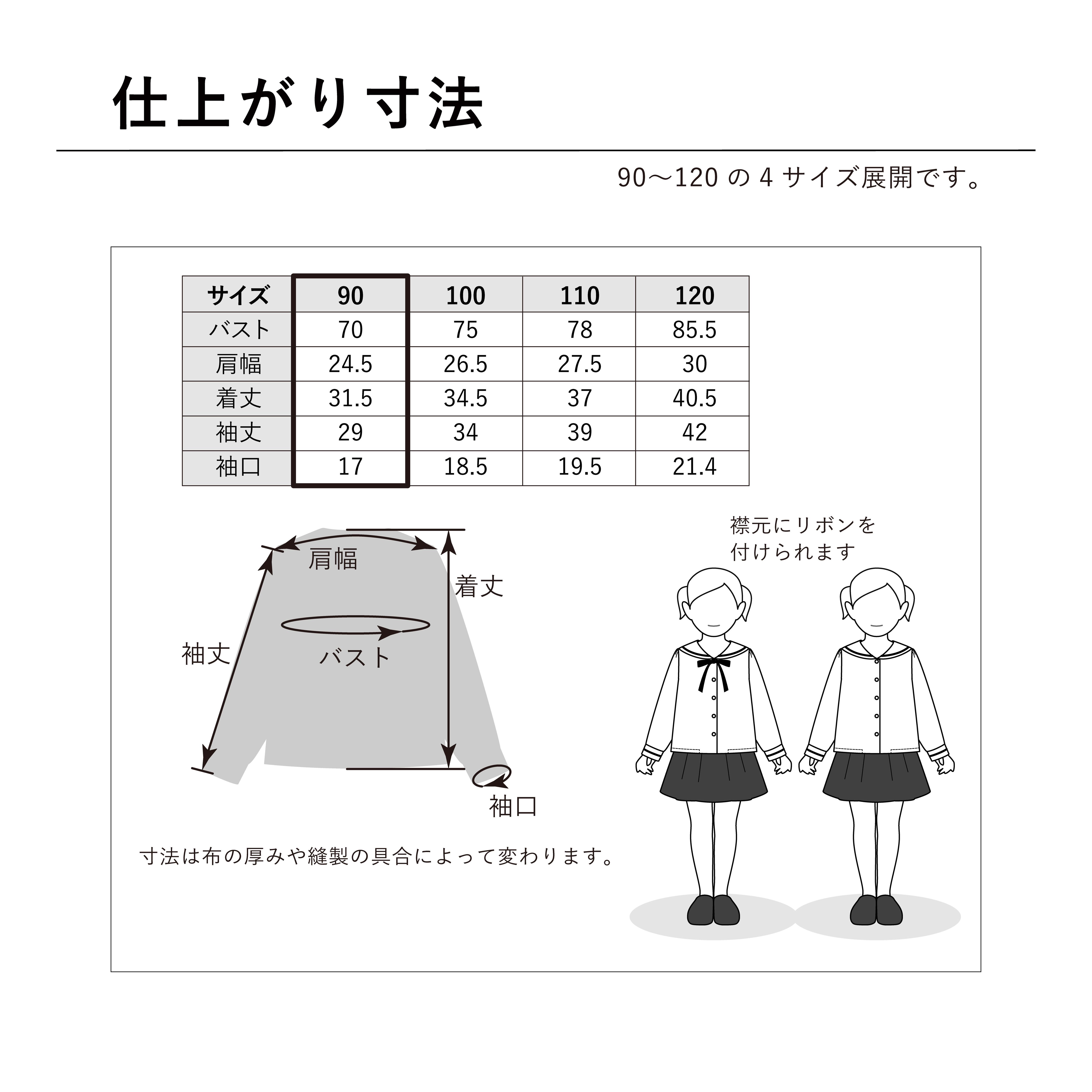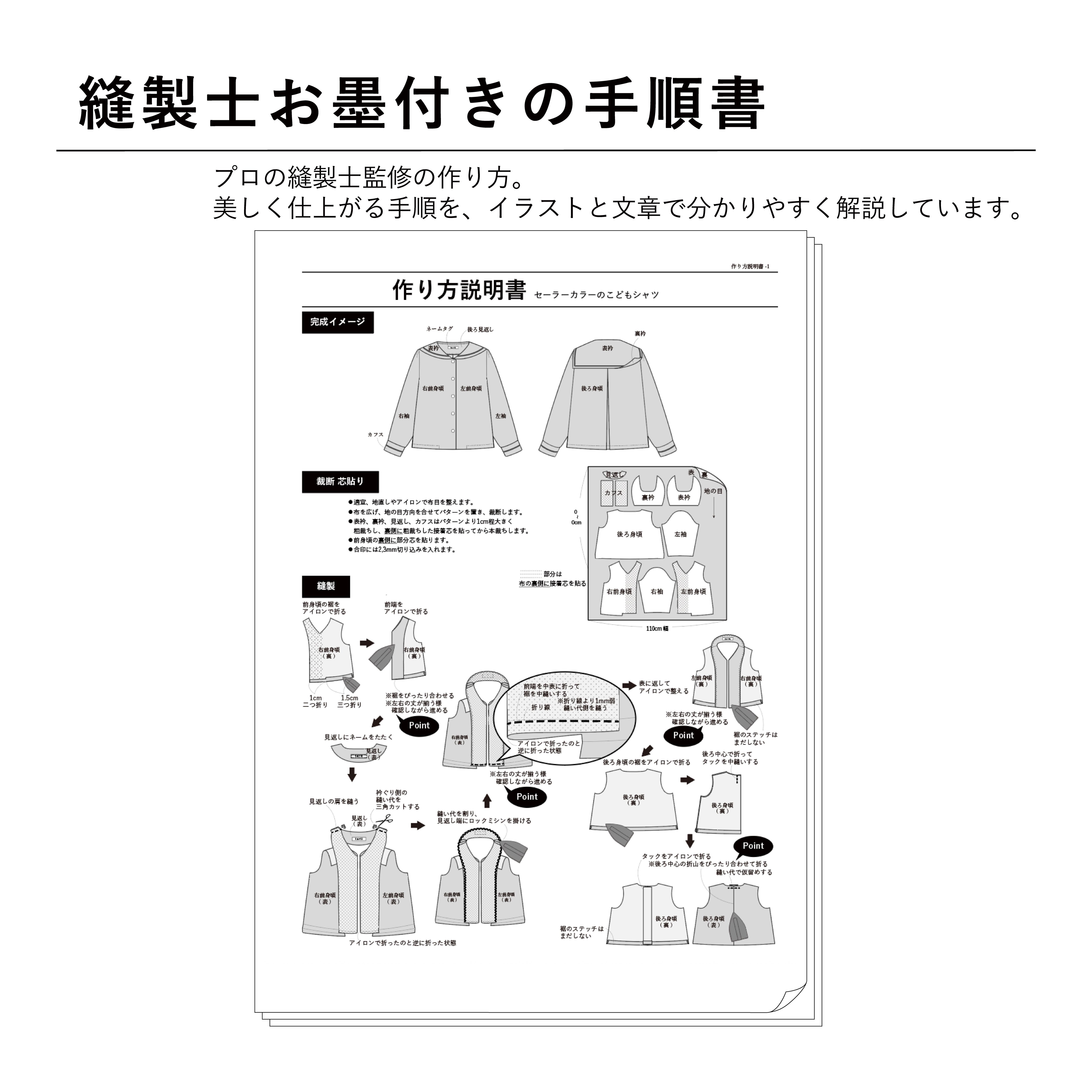 ブラウスにも軽い上着にもできる、こども用セーラーカラーのトップスの型紙です。